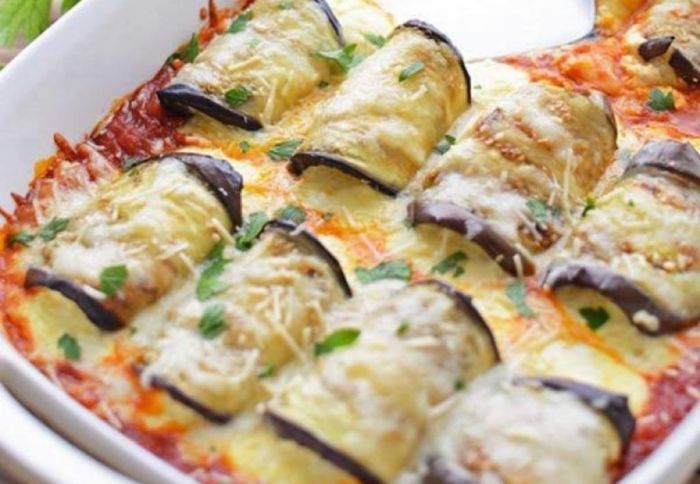 Rolinho de berinjela com ricota Você sabia que a berinjela é originária da Índia e que existe uma grande variedade de berinjelas, que se diferencia pelas cores. As mais comuns são vermelho escuro ou roxo. Esta receita foi realizada com a roxa, mas se você tiver a vermelha, também pode fazer.