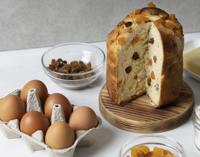 Desligar a batedeira e então adicionar na massa as frutas cristalizadas e uvas passas. Despejar a massa na forma de panetone de 500gr e deixar crescer por aproximadamente 50 minutos.