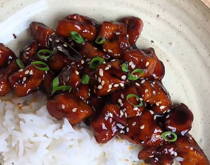 Frango agridoce pode ser acompanhado com arroz branco. Ingredientes: