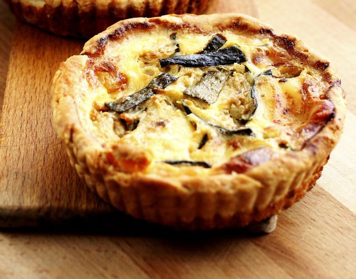 Abra a massa com um rolo e forre o fundo e a lateral de uma forma para quiche média (22 cm de diâmetro).