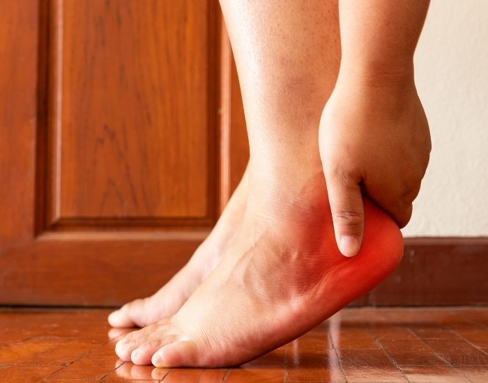 Entre os sintomas da fascite plantar está a dor debaixo do pé, próximo ao calcanhar. Essa dor é mais intensa pela manhã e durante o dia, com o caminhar.